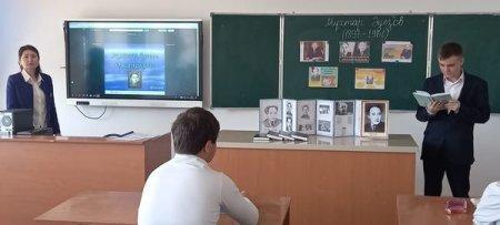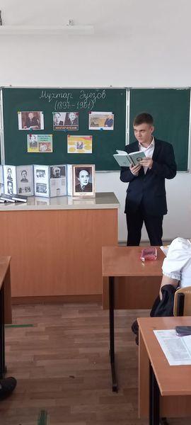 таныту мақсатында"Асқар тау алыстаған сайын айқын көріне түседі..."тақырыбында қазақ тілі мен әдебиеті пәні мұғалімі Абилдаева Анар Құсайнқызы 10-шы сыныптар арасында ашық танымдық сабақ өткізді.Окушылар Мұхтар Әуезовтың мол мұраларынан алатын тағылымды көркем шығармаларымен танысты.