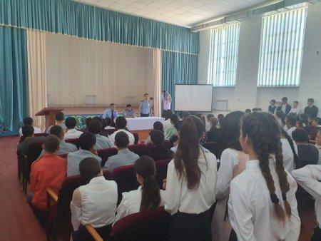 Николай Гоголь атындағы орта мектебінде 25.04-20.05.аралығында өткізіліп жатқан "Абайлаңыз,балалар!"атты акциясына байланысты Байзақ АПБ-нің ӘПБ аға инспекторы полиция капитаны А.Рапилбеков пен кәмелетке толмаған дар аумақтық инспекторы Е.Рахметилдаев оқушылар арасында "Жолда жүру ережелері""Жол қауіпсіздігі"тақырыбында түсіндірме жұмыстарын жүргізді.