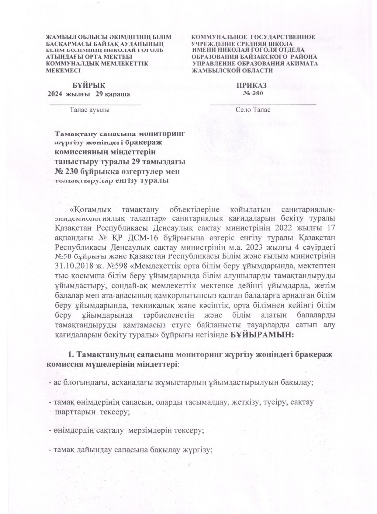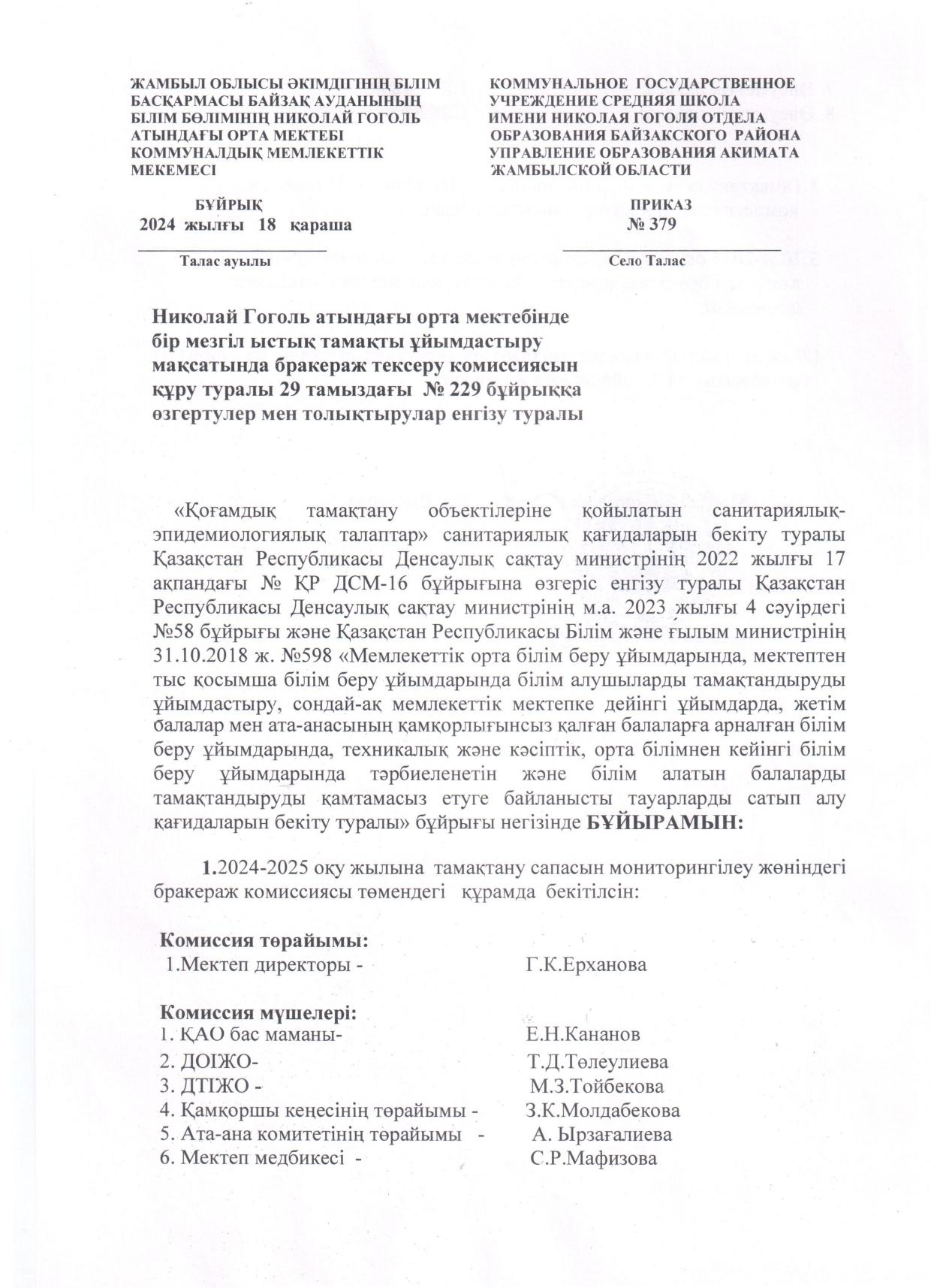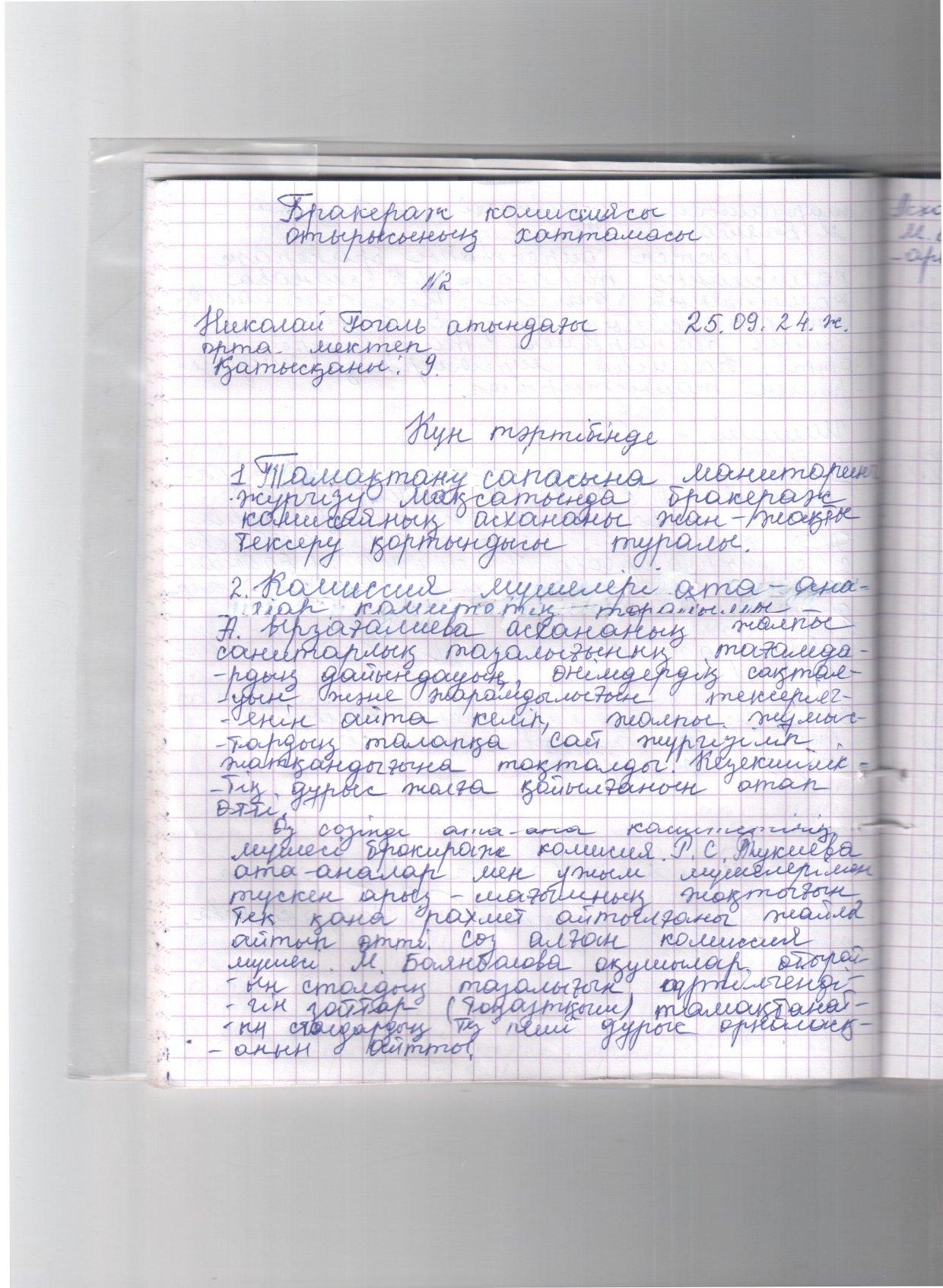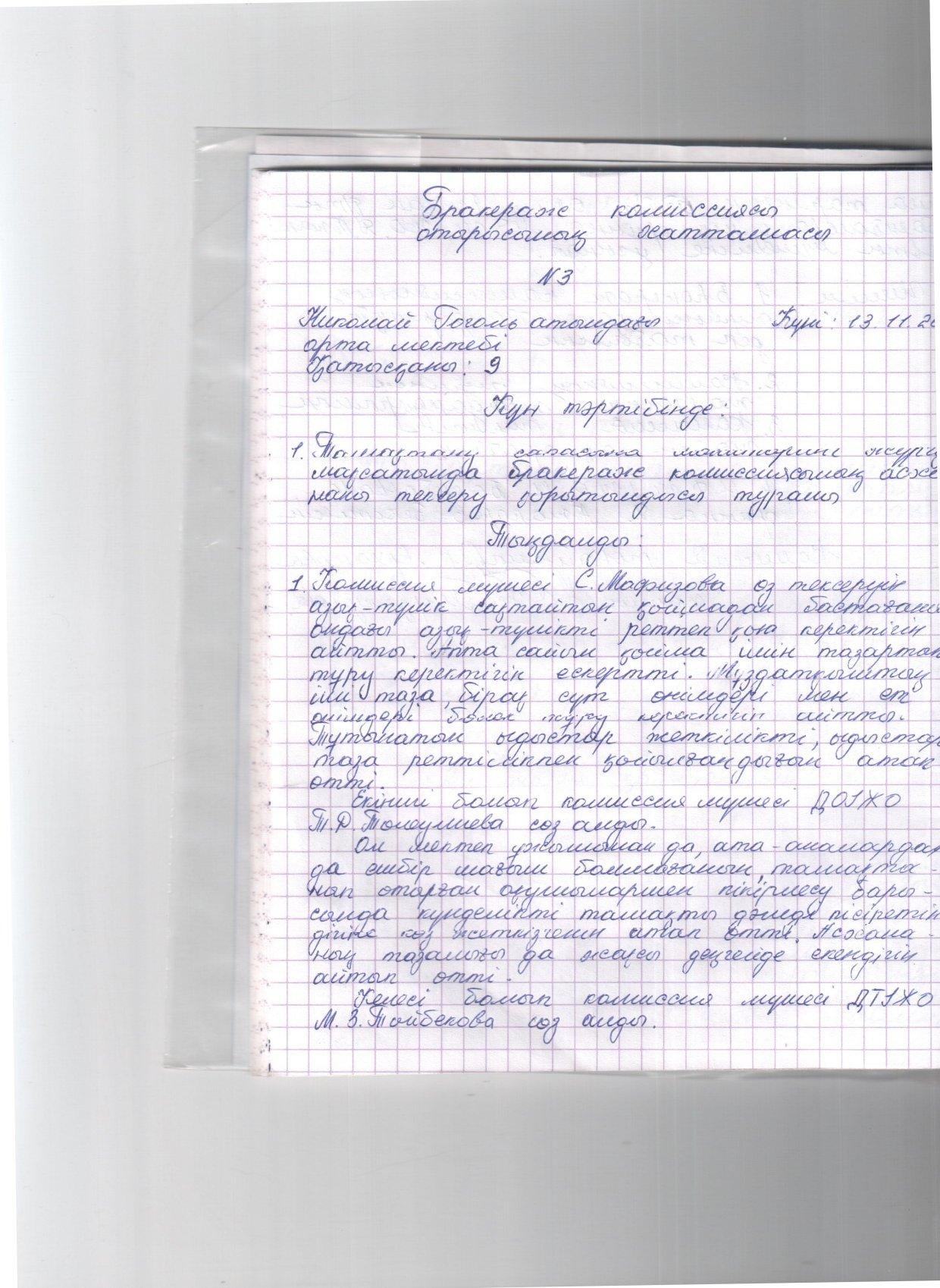 Николай Гоголь атындағы орта мектебінде тамыз айында бракераждық комиссия мүшелері сайланып, мектеп директорының бұйрығымен бекітілді. Комиссия мүшелері өздерінің зерделеу жұмыстарын жүргізуде. Бақылау барысында төмендегідей мәселелер назарға алынды:
